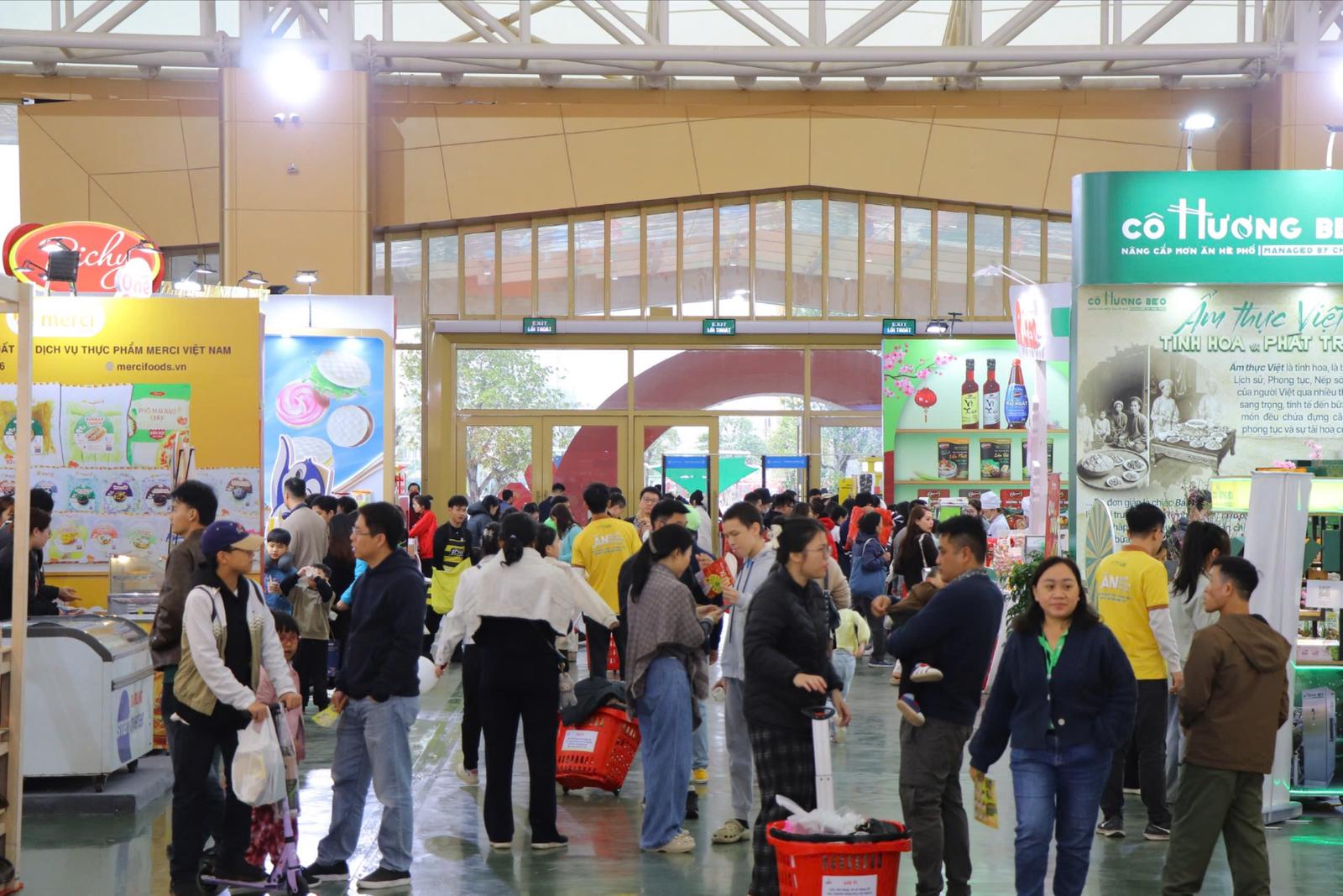 Ngay từ những ngày đầu diễn ra, khu vực trưng bày thực phẩm luôn đông khách, các gian hàng bánh mứt, đặc sản vùng miền, thực phẩm chế biến sẵn liên tục đón người mua từ sáng sớm đến chiều tối. Không khí mua bán sôi động cho thấy nhu cầu chuẩn bị mâm cỗ Tết, quà biếu đầu năm của các gia đình vẫn ở mức cao.