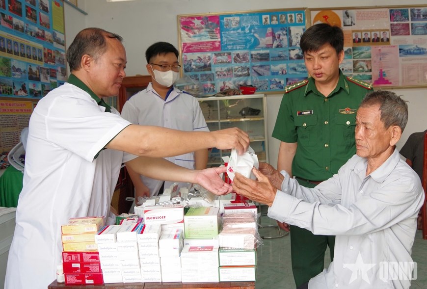 Quân y Đồn Biên phòng Khánh Hội, Bộ đội Biên phòng tỉnh Cà Mau phối hợp với Trung tâm Y tế huyện U Minh khám bệnh, cấp thuốc miễn phí cho người dân xã Khánh Hội, huyện U Minh. Ảnh: qdnd.vn |