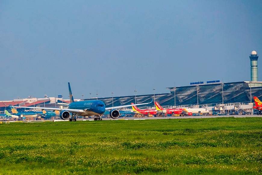 Hoạt động hàng không dân dụng tại Cảng hàng không quốc tế Nội Bài (Hà Nội). Ảnh: PHAN CÔNG |