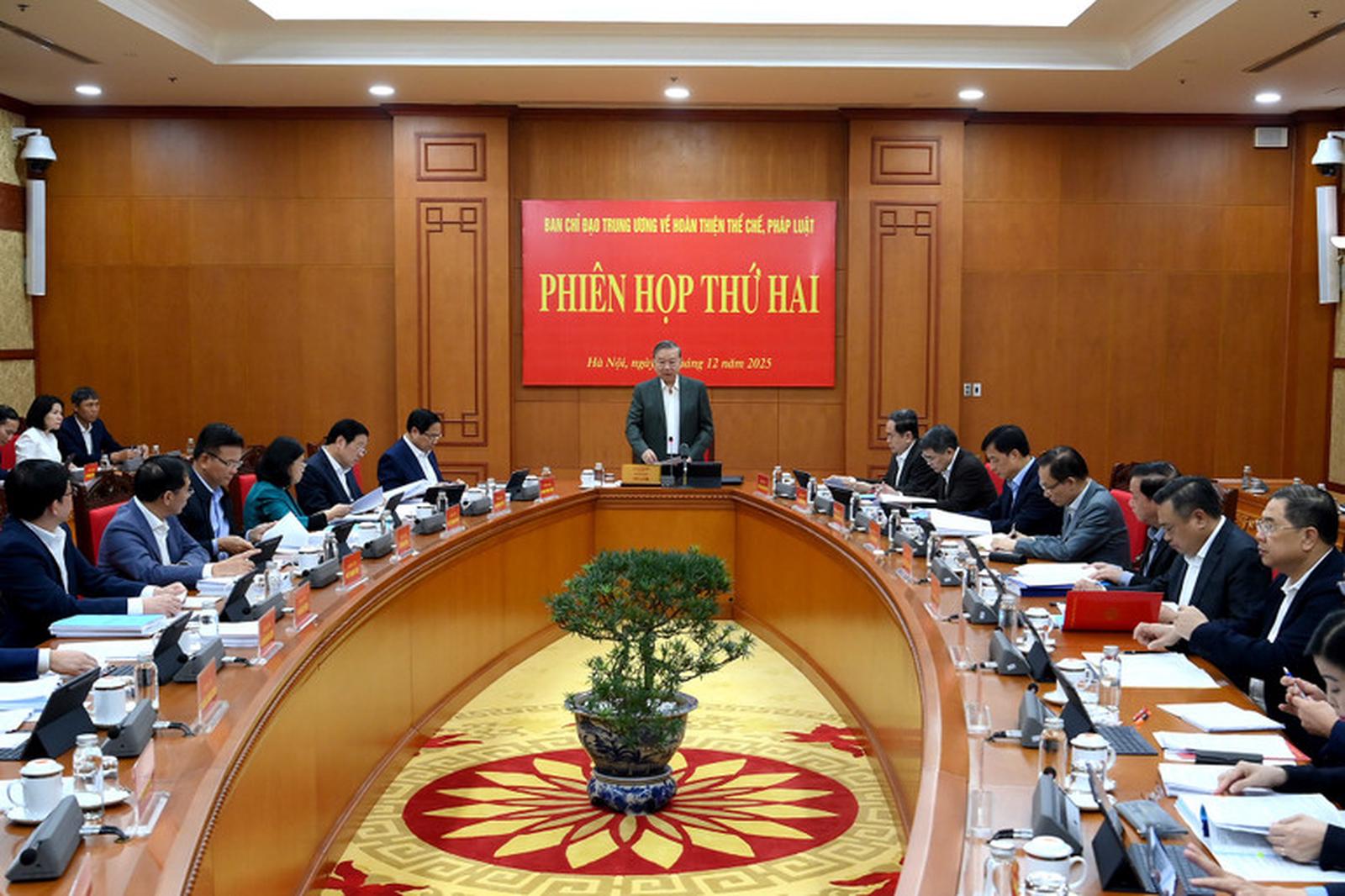 Tổng Bí thư Tô Lâm, Trưởng Ban Chỉ đạo Trung ương về hoàn thiện thể chế, pháp luật chủ trì Phiên họp thứ 2. Ảnh: dangcongsan.vn