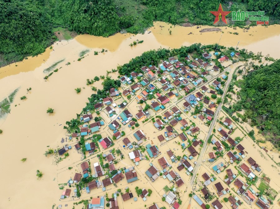 Nước lũ bao vây xã Tân Hóa, huyện Minh Hóa, tỉnh Quảng Bình. Ảnh: Oxalis Adventure |