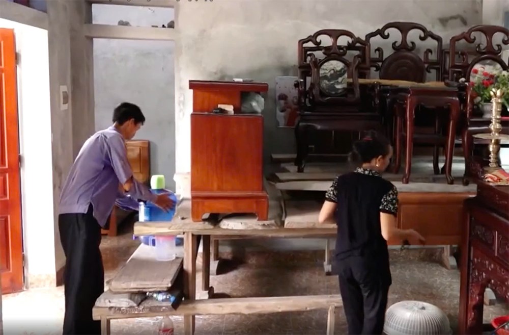Người dân ở thôn Phú Yên, xã Hương Sơn, huyện Mỹ Đức kê cao đồ đạc, phòng tránh tình trạng ngập lụt. |