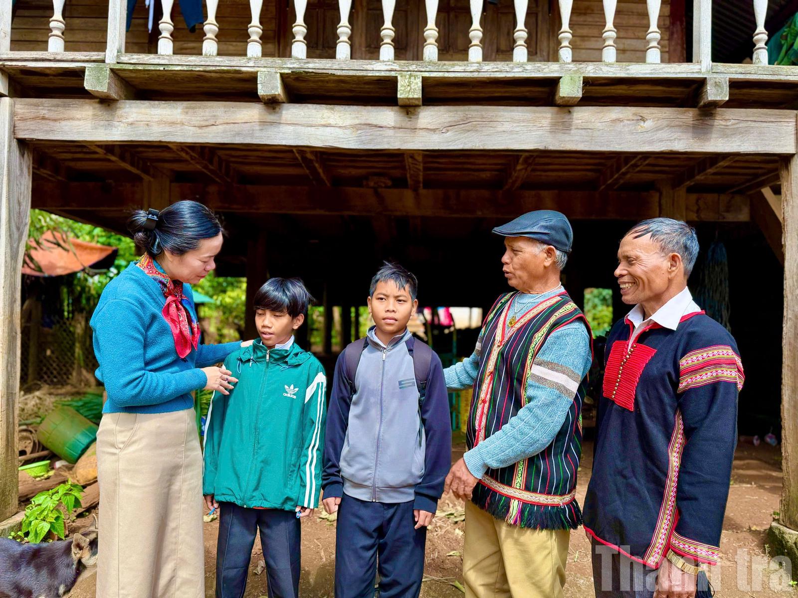 Những người có uy tín cùng cán bộ địa phương, thường xuyên đến tận nhà vận động, tuyên truyền để trẻ em tại các thôn buôn đi học đúng độ tuổi và không bỏ học sớm, góp phần nâng cao chất lượng giáo dục tại xã Ea Hiao, Đắk Lắk. Ảnh: NG