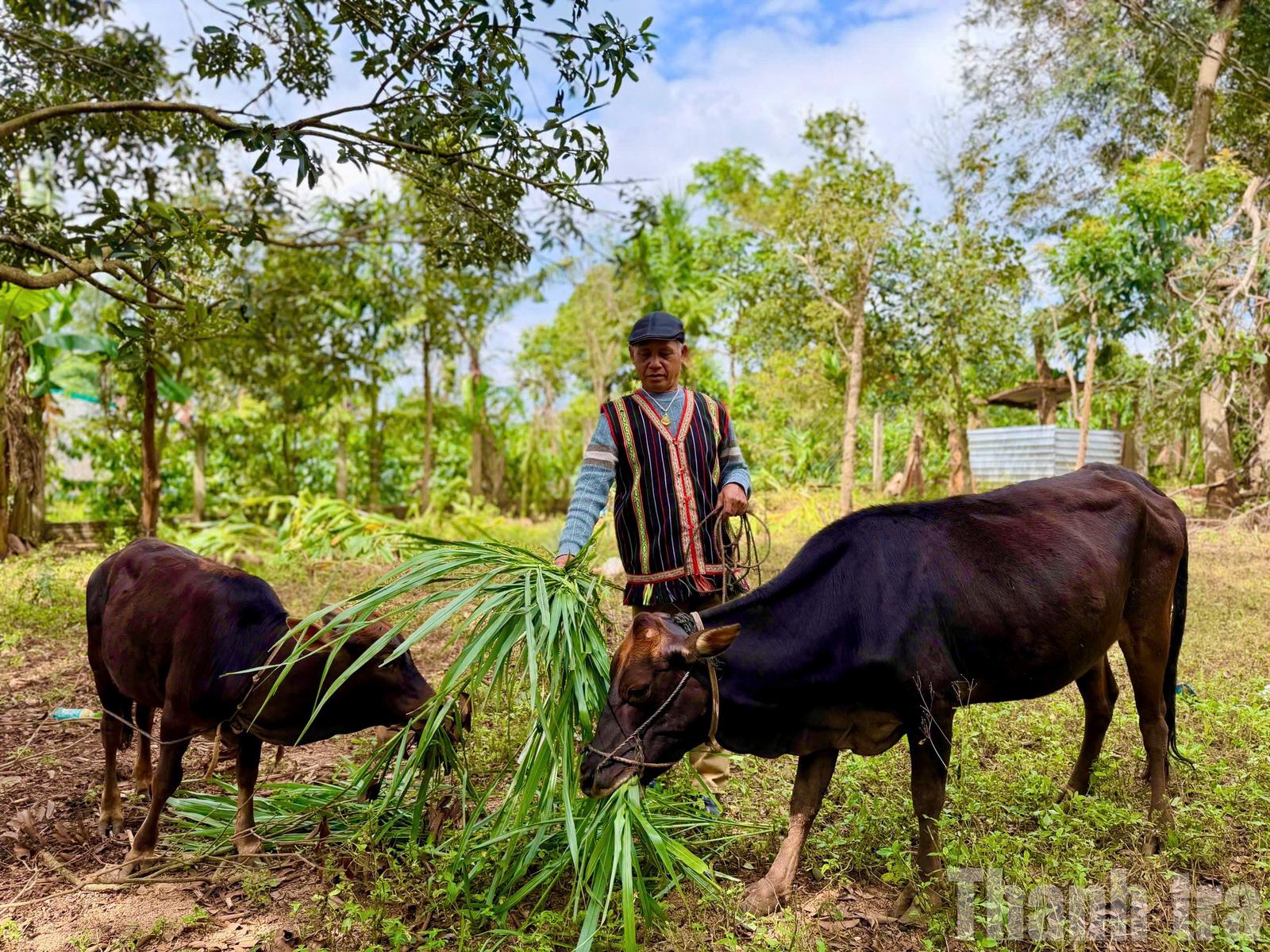 Ông Ksơr Lêu (dân tộc Gia Rai), người có uy tín ở buôn Tang, xã Ea Hiao (tỉnh Đắk Lắk) tiên phong xây dựng mô hình kinh tế tổng hợp, đạt thu nhập hàng trăm triệu đồng mỗi năm, trở thành điểm sáng để bà con học hỏi và làm theo, từng bước vươn lên thoát nghèo. Ảnh: NG