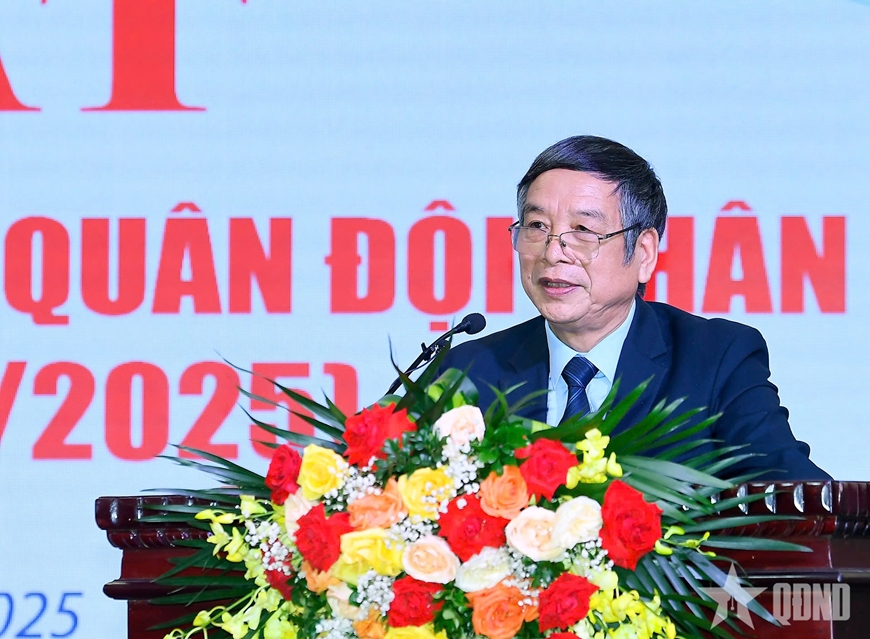 Thiếu tướng Đoàn Xuân Bộ, Bí thư Đảng ủy, Tổng biên tập Báo Quân đội nhân dân phát biểu tại gặp mặt kỷ niệm. Ảnh: TUẤN HUY |