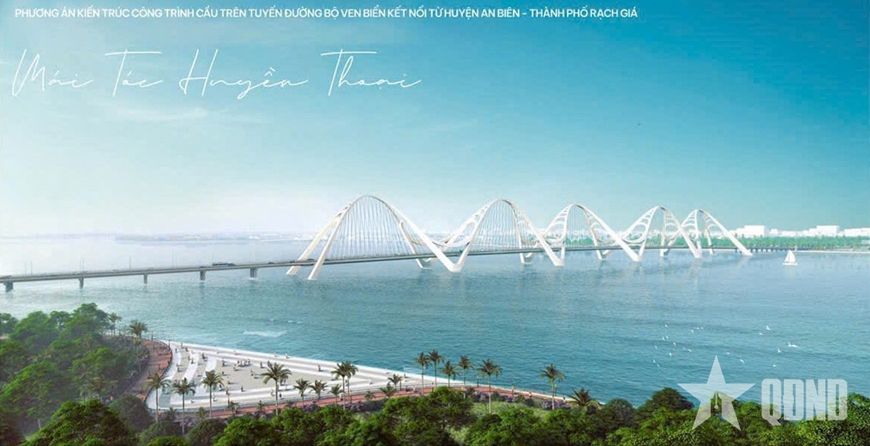 Phối cảnh Cầu trên tuyến đường bộ ven biển kết nối từ An Biên - Rạch Giá. |