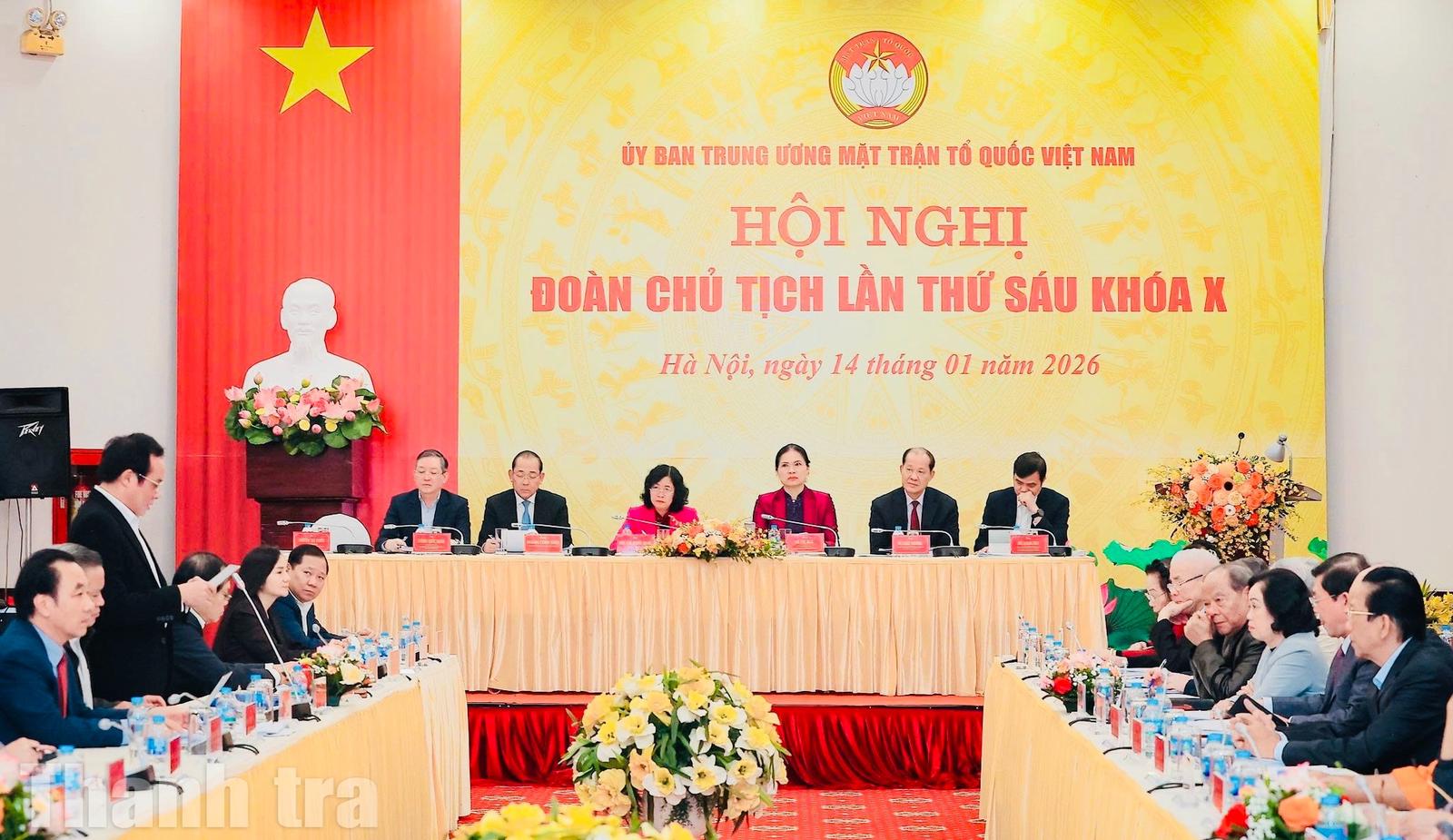 Ngày 14/1, Hội nghị Đoàn Chủ tịch Ủy ban Trung ương (UBTƯ) MTTQ Việt Nam lần thứ sáu khóa X diễn ra trong bối cảnh năm 2026 - năm có ý nghĩa đặc biệt quan trọng, gắn với việc triển khai Nghị quyết Đại hội đại biểu toàn quốc lần thứ XIV của Đảng và tổ chức bầu cử đại biểu Quốc hội khóa XVI, đại biểu HĐND các cấp nhiệm kỳ 2026-2031.