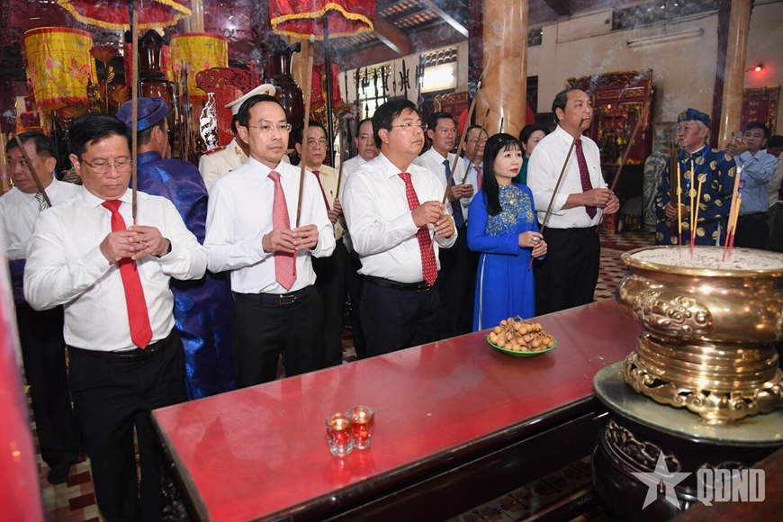 | Đoàn đại biểu dâng hương tại đình Nguyễn Trung Trực. |