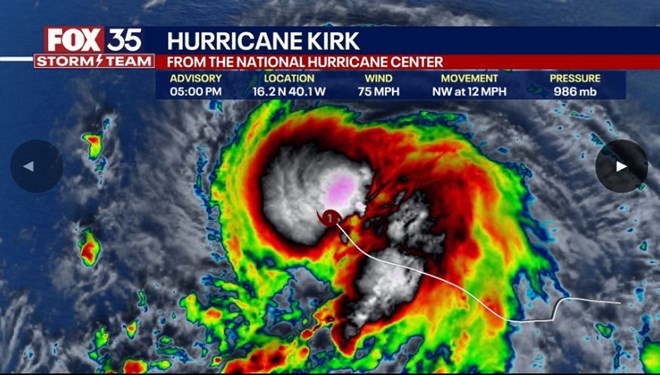 Bão Kirk, cơn bão mới nhất sau bão Helene. Ảnh: Fox Weather