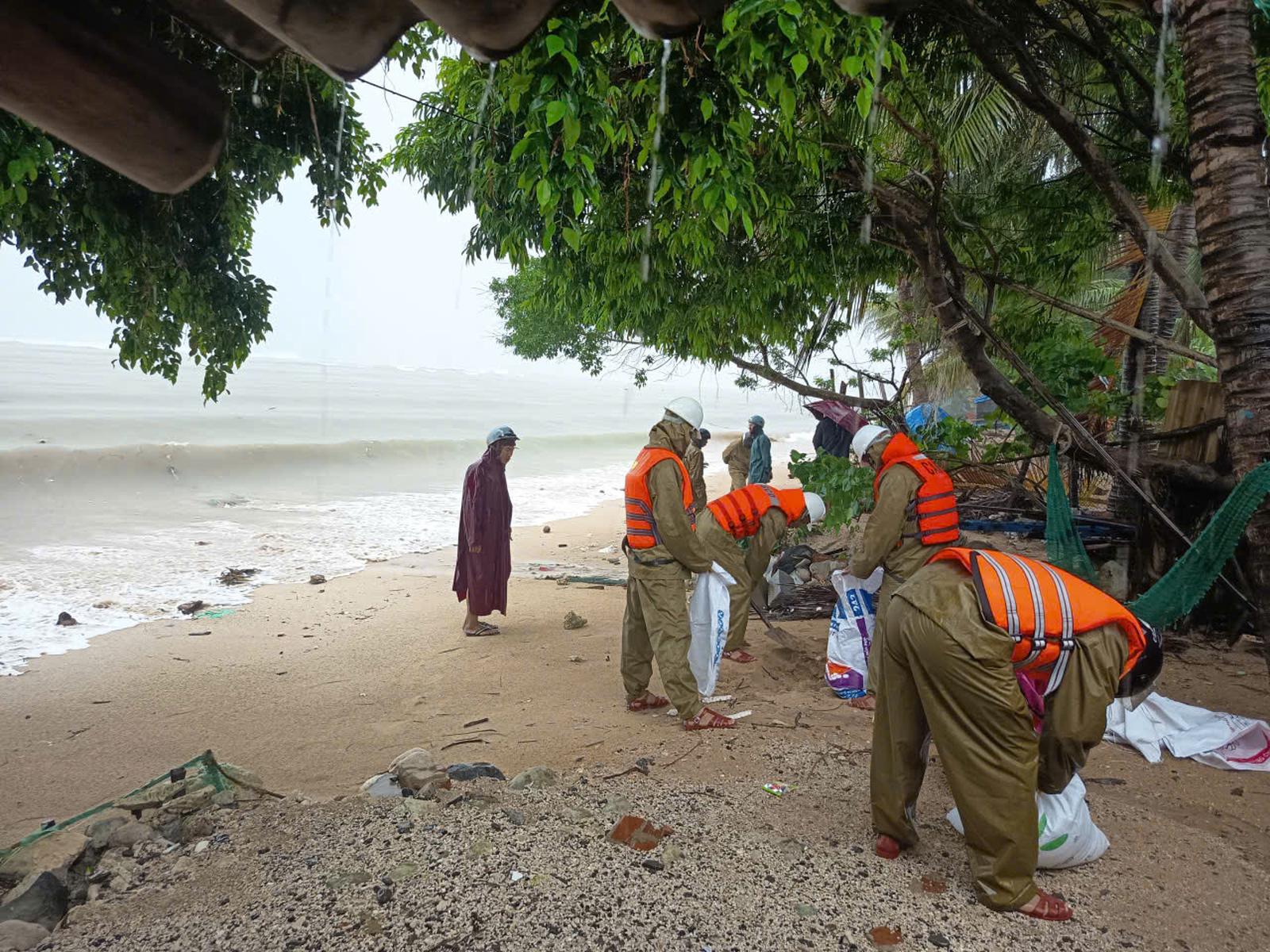 Công an phối hợp cùng chính quyền địa phương hỗ trợ người dân sơ tán, ứng phó trước khi bão Kalmaegi đổ bộ ngày 6/11. Ảnh: PV