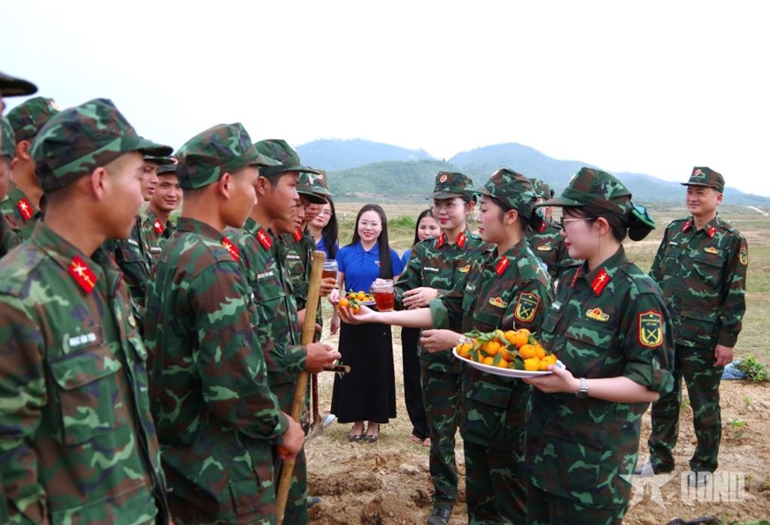 Giữa không khí khẩn trương xây dựng thao trường, chuẩn bị cho nhiệm vụ huấn luyện năm 2026, những ly nước mát lạnh, những phần quà nhỏ được trao tận tay các chiến sĩ từ Đoàn thanh niên xã Thuần Trung (Nghệ An) và Hội Phụ nữ Sư đoàn 324 (Quân khu 4) đã trở thành điểm sáng, lan tỏa hơi ấm tình quân-dân trên thao trường.