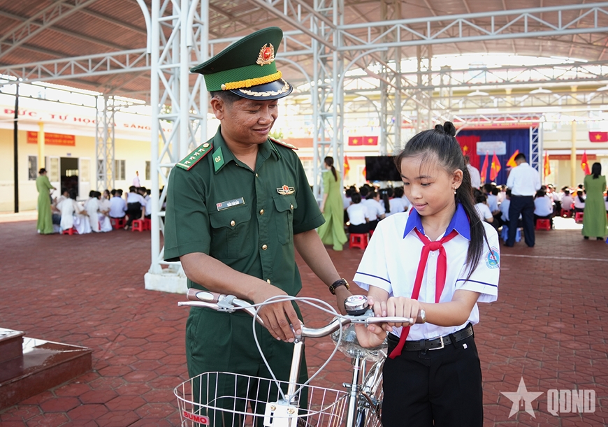 Tại các điểm trường, Ban chỉ huy BĐBP tỉnh và chỉ huy các đồn, Hải đội Biên phòng đã trao 55 suất học bổng (trị giá 4,5 triệu đồng/suất) tặng 55 em học sinh trong Chương trình “Nâng bước em đến trường" và "Con nuôi đồn Biên phòng” do đơn vị nhận đỡ đầu, bên cạnh đó đơn vị đã tặng 8 suất quà, 8 chiếc xe đạp, hơn 11.500 quyển tập cho các em học sinh có hoàn cảnh khó khăn trên khu vực biên giới của tỉnh, tổng trị giá gần 320 triệu đồng.