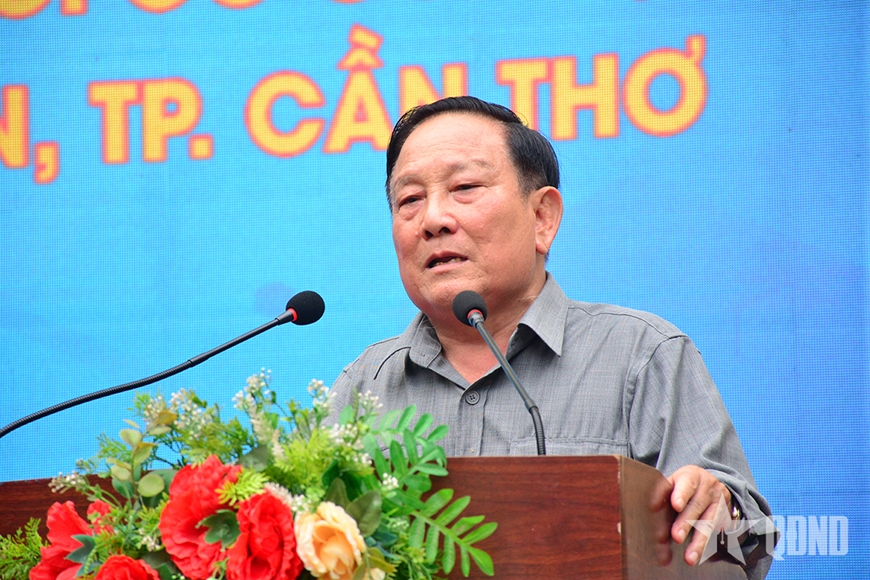 | Thiếu tướng Vũ Cao Quân, Phó chủ tịch Hội đồng Quản trị Bệnh viện Đa khoa Hòa Hảo-Medic Cần Thơ phát biểu tại chương trình. |