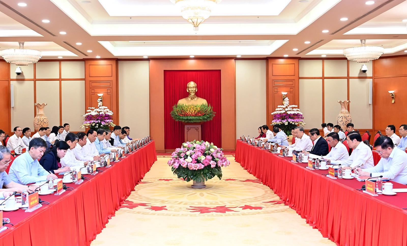Bộ Chính trị đã làm việc với Ban Thường vụ Đảng uỷ Quốc hội để cho ý kiến vào dự thảo các văn kiện, phương án nhân sự và công tác chuẩn bị Đại hội đại biểu Đảng bộ Quốc hội lần thứ I, nhiệm kỳ 2025 - 2030. Ảnh: nhandan.vn