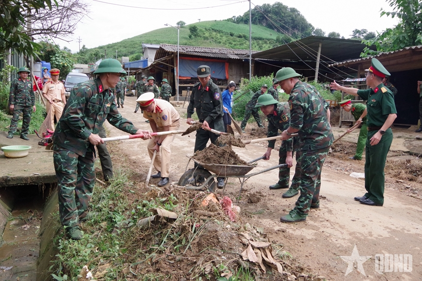 | Đoàn Thanh niên Bộ CHQS tỉnh Sơn La phối hợp với các lực lượng dọn dẹp vệ sinh đường giao thông nông thôn tại xã Lóng Phiêng, tỉnh Sơn La. |