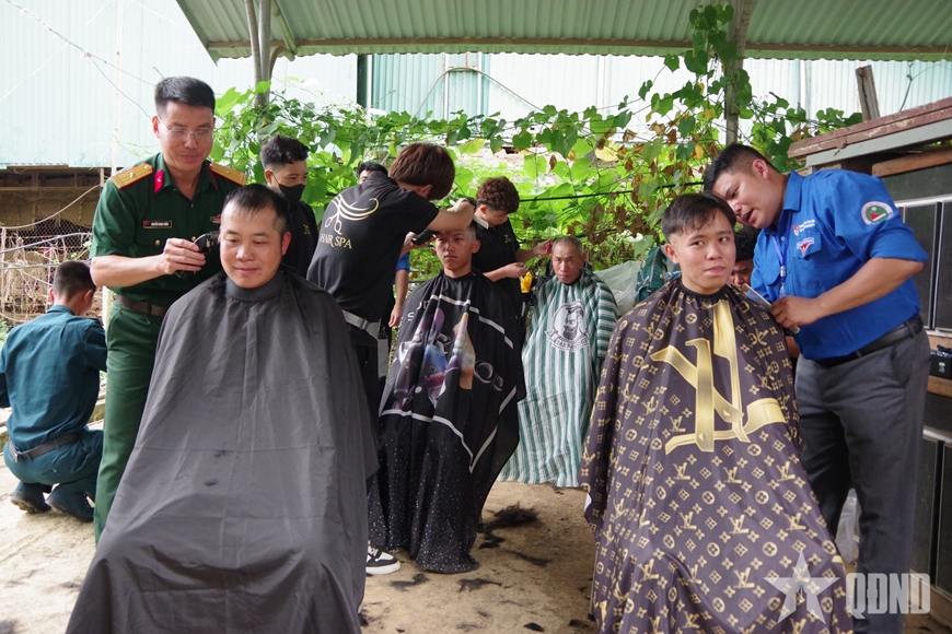 | Đoàn Thanh niên Bộ CHQS tỉnh và Tiểu đoàn Căn cứ sân bay Nà Sản (Sư đoàn 371, Quân chủng Phòng không - Không quân) tổ chức cắt tóc miễn phí cho nhân dân tại xã Lóng Phiêng, tỉnh Sơn La. |