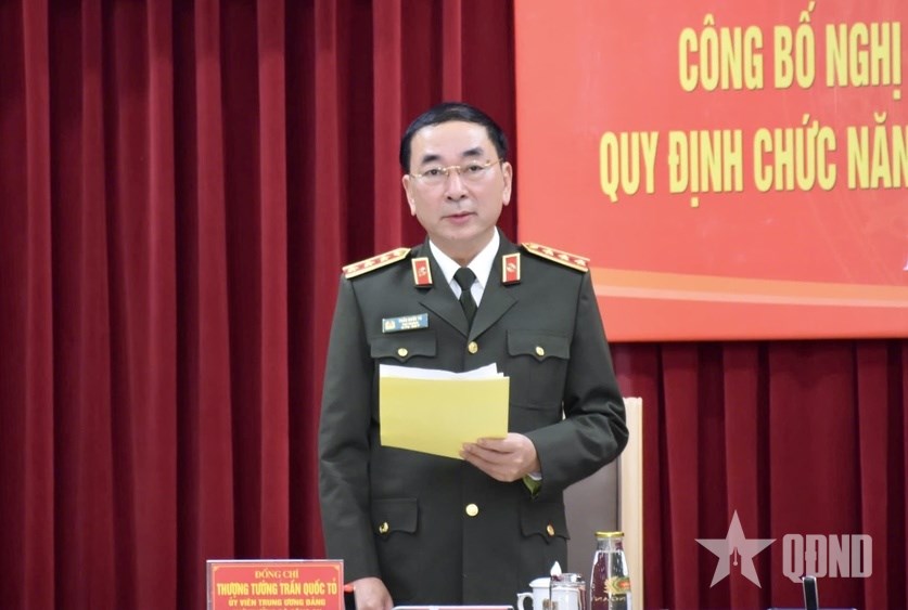| Thượng tướng Trần Quốc Tỏ, Ủy viên Trung ương Đảng, Thứ trưởng Bộ Công an phát biểu tại cuộc họp báo. |
