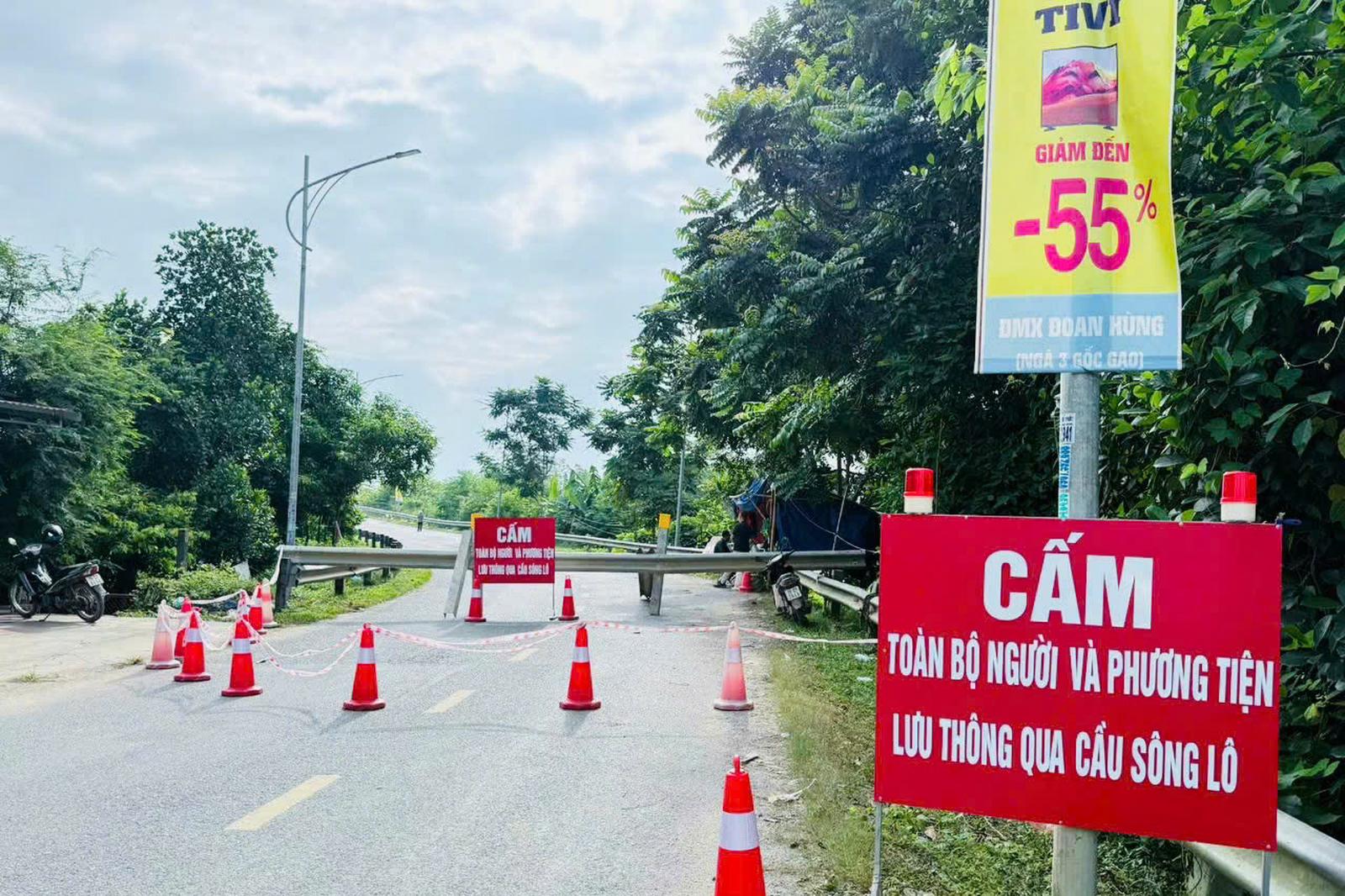 Sở Xây dựng tỉnh Phú Thọ thông báo về việc tạm dừng lưu thông qua cầu Sông Lô (xã Đoan Hùng). Ảnh: MH