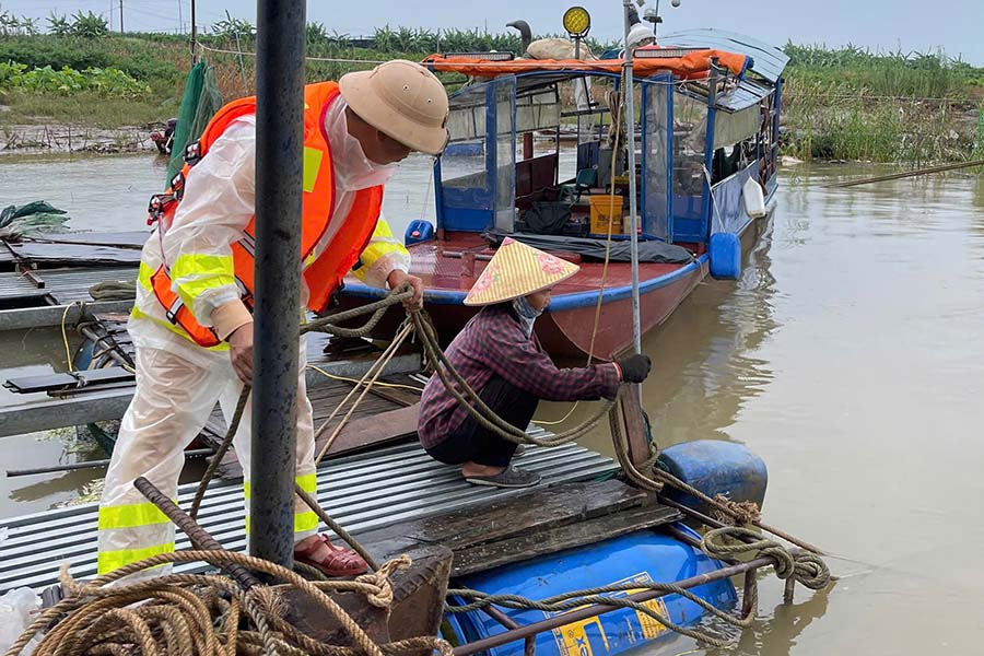 Ngay từ sớm, tổ công tác do Thiếu tá Lê Văn Hải làm tổ trưởng, trực tiếp đến các khu vực sông Hồng đoạn qua xã Bát Tràng và vùng giáp ranh để kiểm tra tình hình nước sông, công tác neo đậu phương tiện và hoạt động vận chuyển hành khách.