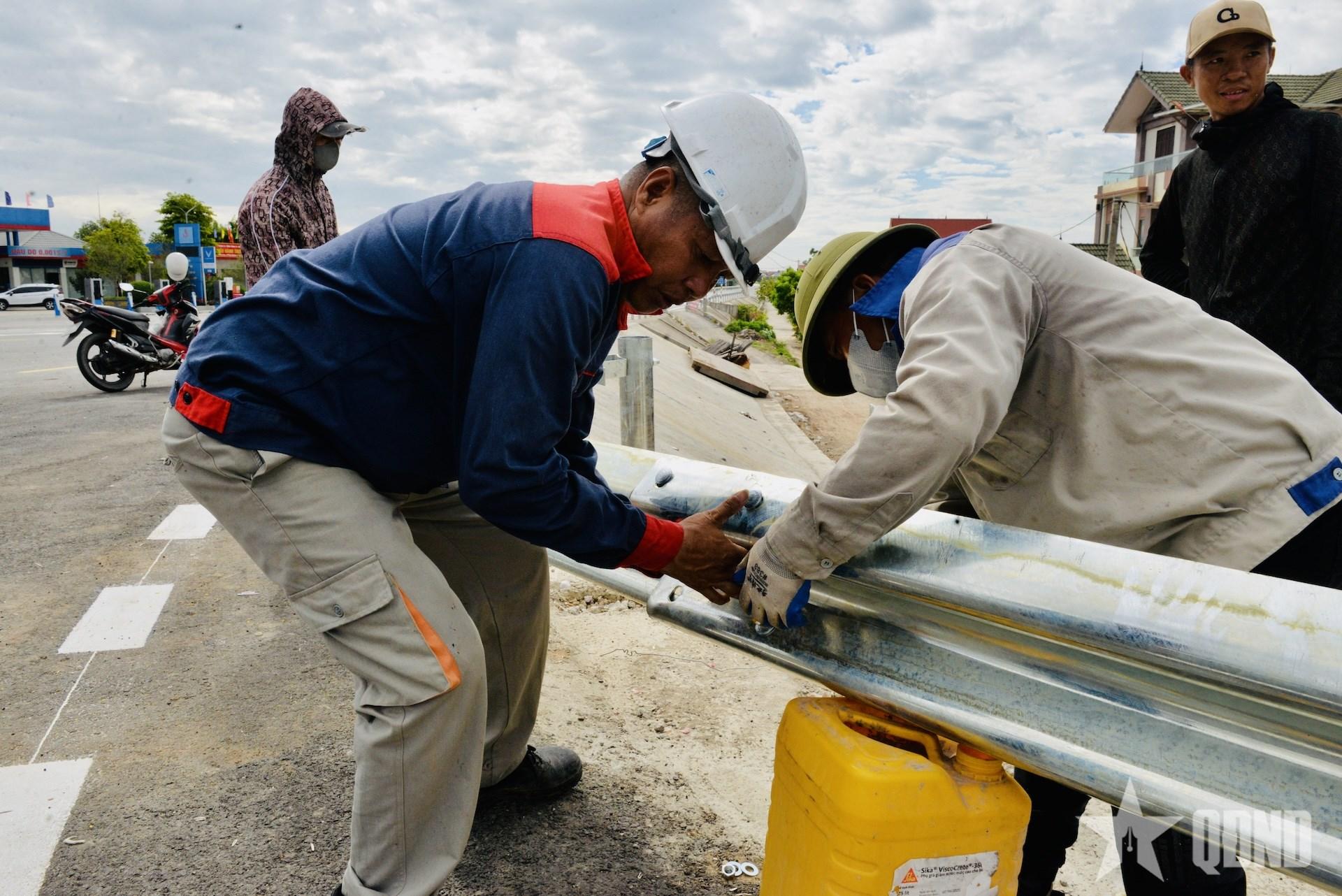 | Công nhân chỉnh sửa dải phân cách. |