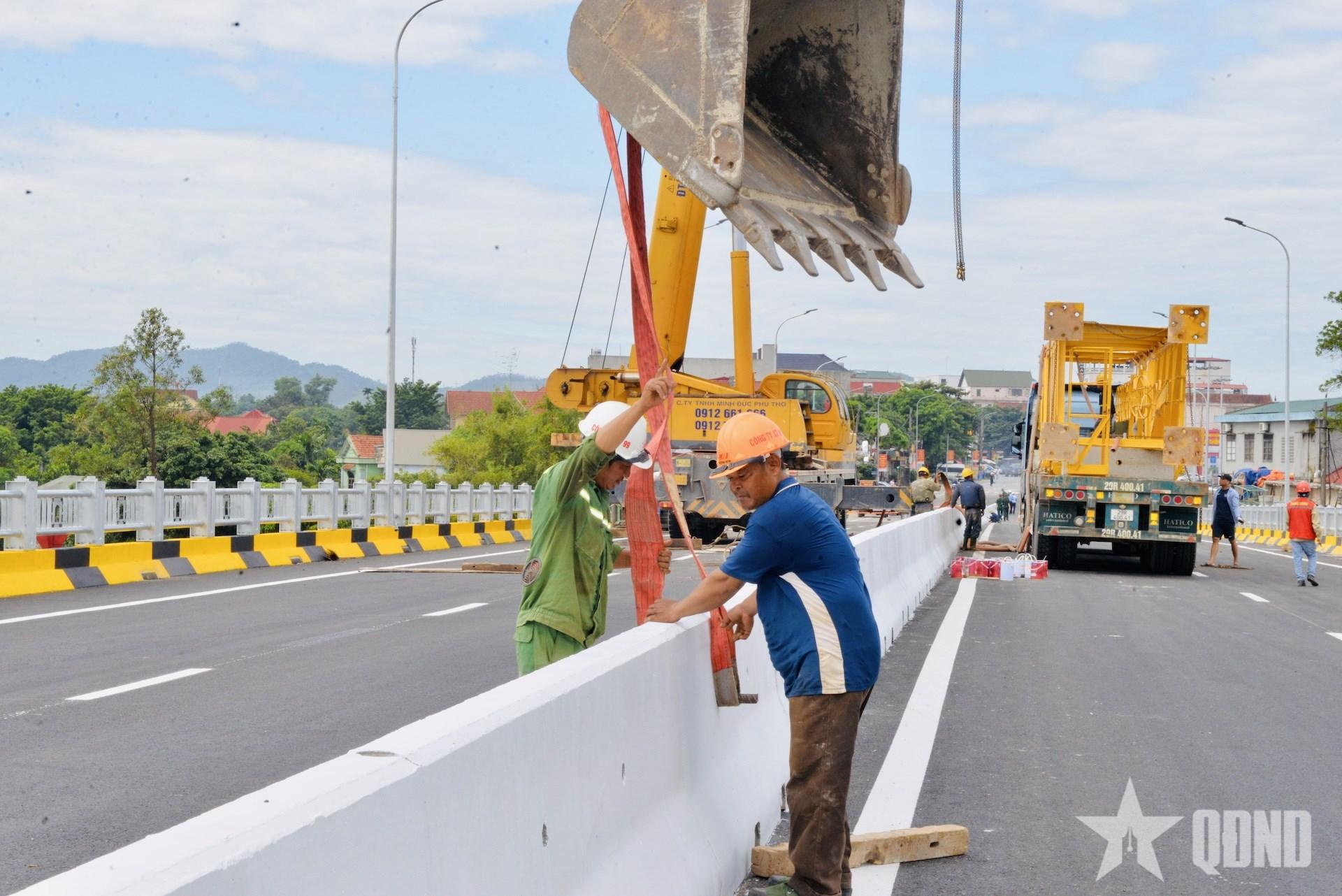 | Đại tá Nguyễn Tuấn Anh, Phó tư lệnh Binh đoàn 12, Phó tổng giám đốc Tổng công ty Xây dựng Trường Sơn kiểm tra các công đoạn cuối cùng để chuẩn bị cho ngày khánh thành, thông xe cầu Phong Châu. |