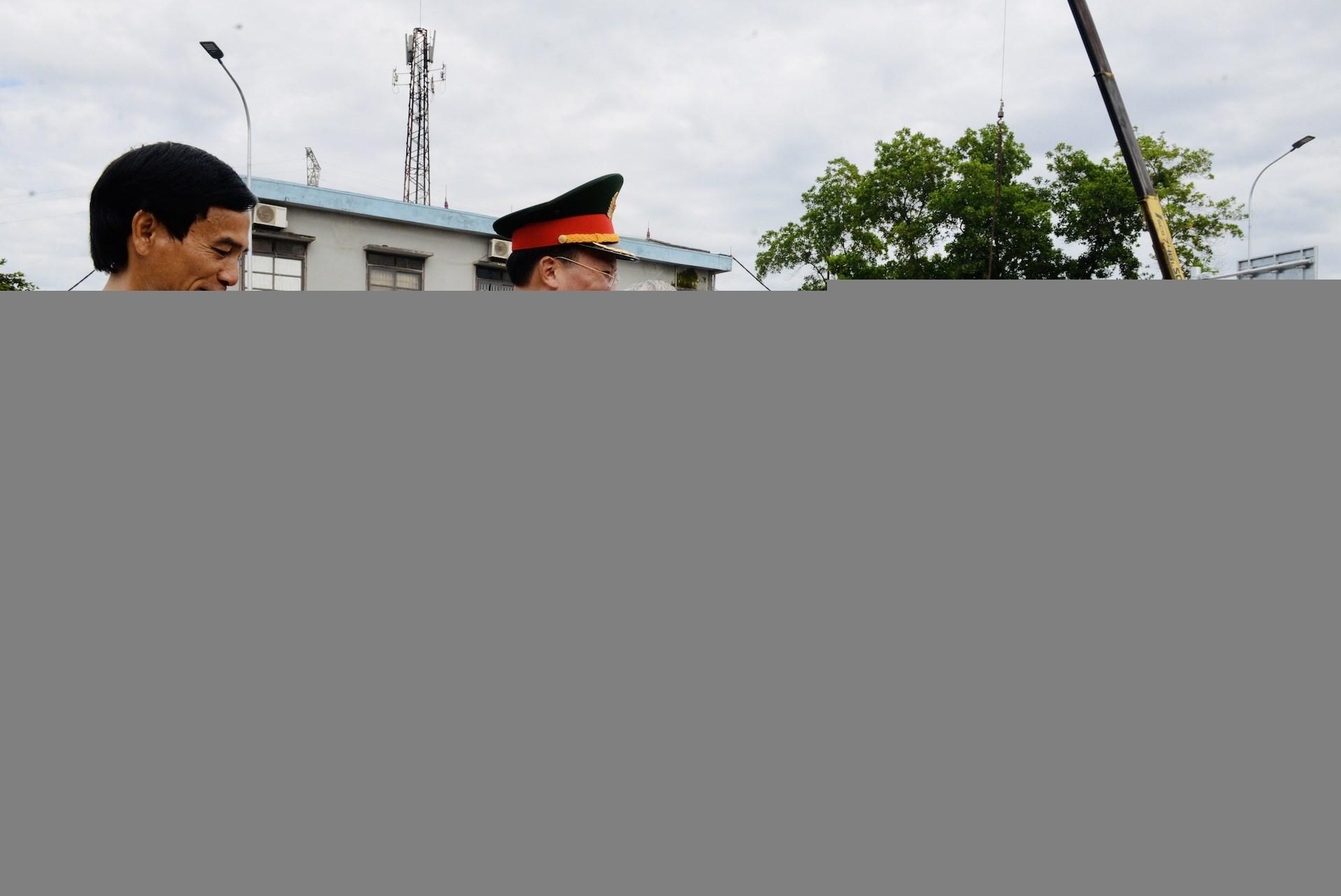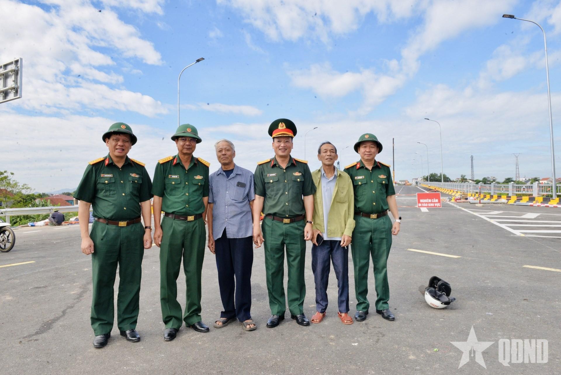 | Đại tá Lê Văn Sơn, Phó tham mưu trưởng Quân khu 2 (thứ 2, từ trái sang); Đại tá Nguyễn Tuấn Anh, Phó tư lệnh Binh đoàn 12, Phó tổng giám đốc Tổng công ty Xây dựng Trường Sơn (đứng giữa) kiểm tra, triển khai công tác tổ chức cho lễ khánh thành, thông xe cầu Phong Châu vào ngày 28-9. |