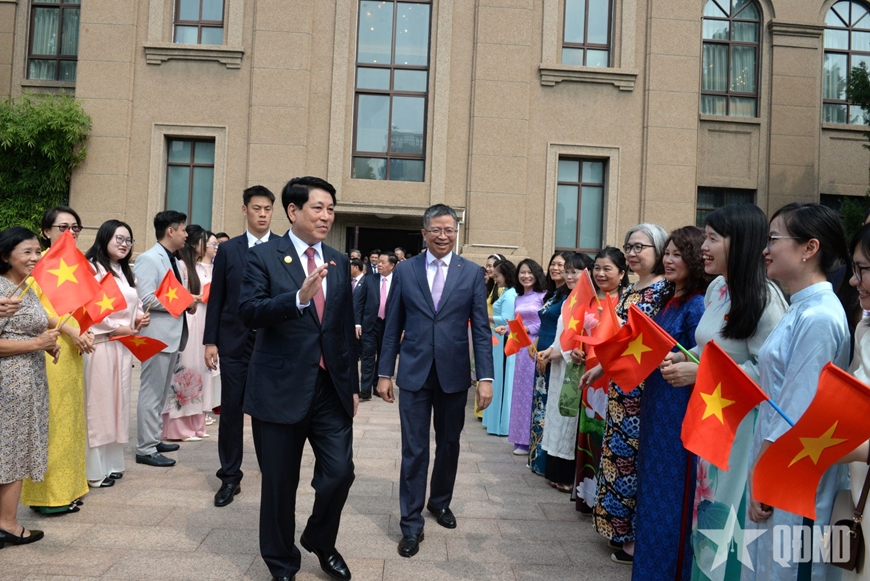 Chủ tịch nước đánh giá cao tập thể cán bộ, nhân viên Đại sứ quán, các cơ quan đại diện, cơ quan thường trú Việt Nam tại Trung Quốc đã rất nỗ lực, khắc phục khó khăn, hoàn thành tốt các nhiệm vụ Đảng, Nhà nước giao phó, đặc biệt là triển khai hiệu quả các nhiệm vụ chính trị đối ngoại, ngoại giao kinh tế, văn hóa, công tác người Việt Nam ở nước ngoài, công tác bảo vệ chủ quyền biển, đảo; biểu dương tinh thần đoàn kết, nỗ lực vươn lên của cộng đồng người Việt Nam ở Trung Quốc, góp phần tích cực vào việc củng cố và thúc đẩy mối quan hệ “vừa là đồng chí, vừa là anh em” giữa hai nước Việt Nam - Trung Quốc, lan tỏa hình ảnh thân thiện, gần gũi về con người Việt Nam với bạn bè sở tại và quốc tế.