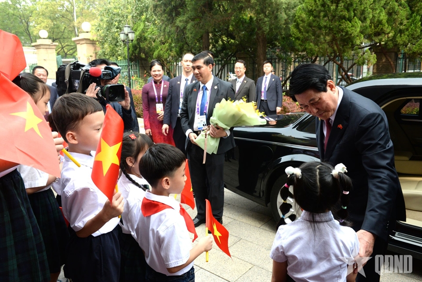 Tại buổi gặp mặt, Đại sứ Việt Nam tại Trung Quốc Phạm Thanh Bình đã báo cáo với Chủ tịch nước một số nét về quan hệ Việt Nam - Trung Quốc trong thời gian qua; những kết quả đạt được trên các mặt công tác - ngoại giao chính trị, ngoại giao kinh tế, ngoại giao văn hóa... và tình hình cộng đồng người Việt Nam tại Trung Quốc.