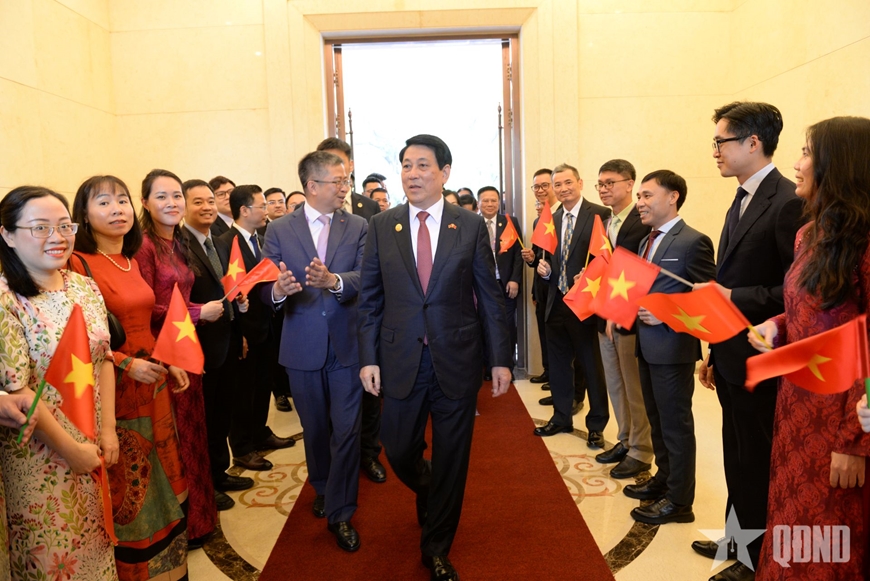Thay mặt lãnh đạo Đảng và Nhà nước, Chủ tịch nước Lương Cường đã gửi tới toàn thể cộng đồng người Việt Nam đang sinh sống, học tập và làm việc tại Trung Quốc, các cán bộ, nhân viên Đại sứ quán Việt Nam những tình cảm chân thành và những lời chúc tốt đẹp nhất.