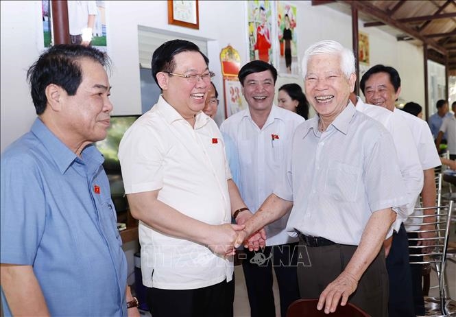 | Chủ tịch Quốc hội Vương Đình Huệ thăm, chúc Tết nguyên Chủ tịch nước Nguyễn Minh Triết. |
