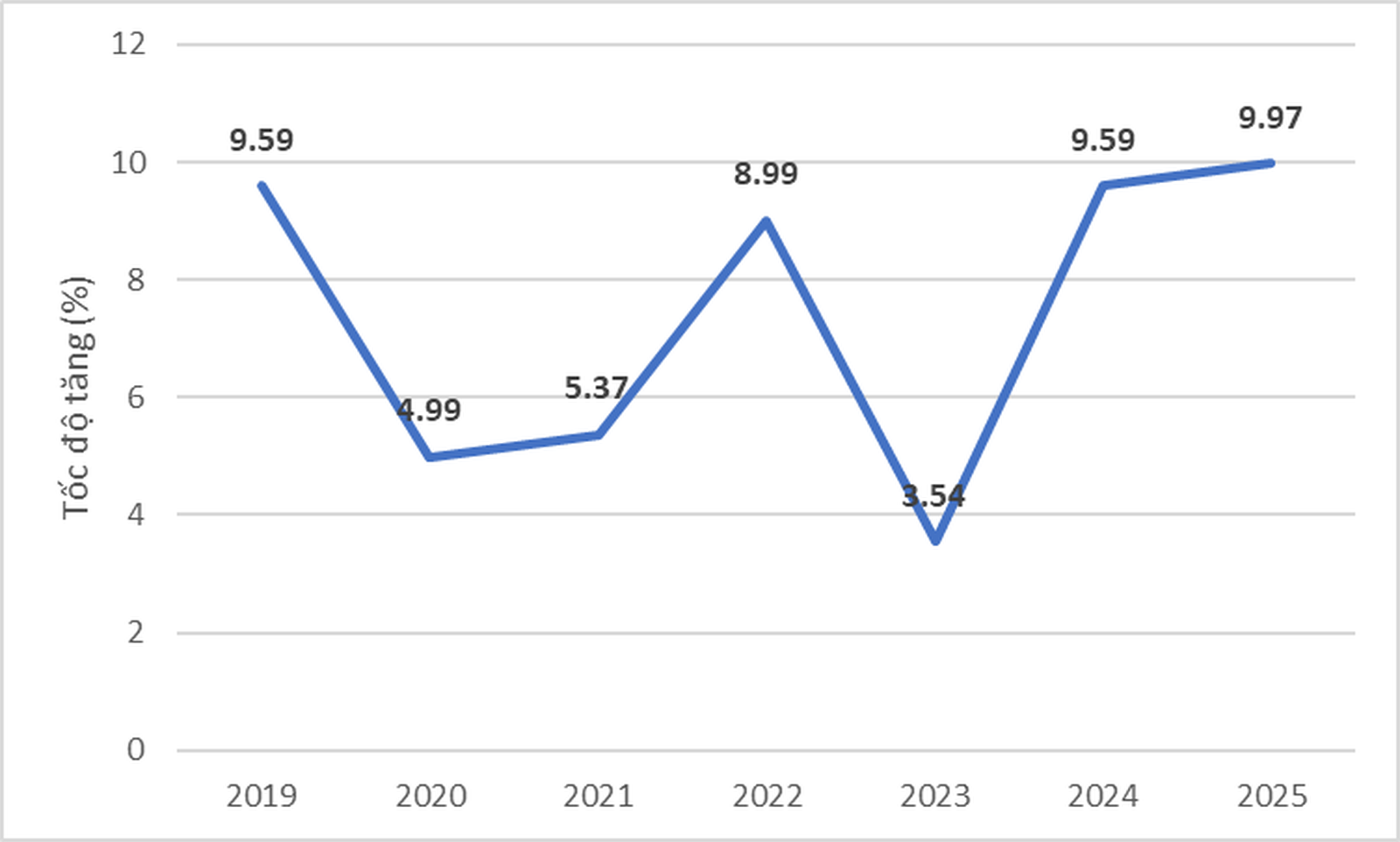 Giá trị tăng thêm ngành công nghiệp chế biến, chế tạo năm 2019 – 2025 (%). Ảnh: NSO