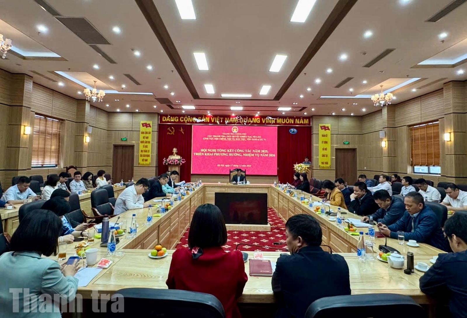 Ngày 17/12, Cục Thanh tra, giải quyết khiếu nại, tố cáo lĩnh vực nội chính, nội vụ, dân tộc, tôn giáo (Cục V), Thanh tra Chính phủ tổ chức hội nghị tổng kết công tác năm 2025 và triển khai phương hướng, nhiệm vụ năm 2025.