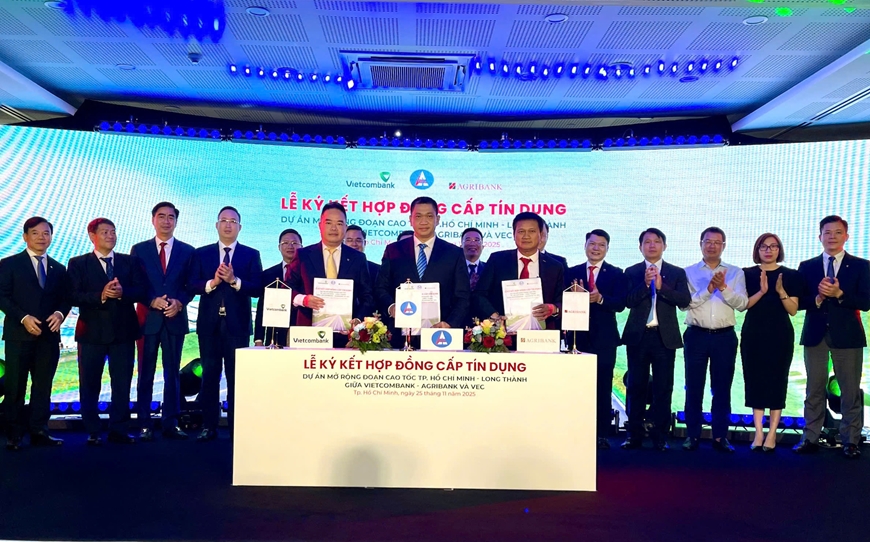 Ngày 26-11, Tổng công ty Đầu tư phát triển đường cao tốc Việt Nam (VEC) cho biết, Hợp đồng cấp tín dụng cho dự án mở rộng đoạn cao tốc TP Hồ Chí Minh - Long Thành vừa được chính thức ký kết với Ngân hàng Thương mại cổ phần Ngoại thương Việt Nam (Vietcombank) và Ngân hàng Nông nghiệp và Phát triển nông thôn Việt Nam (Agribank).