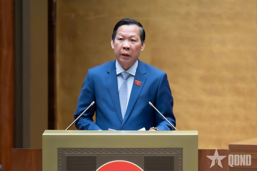 Trước đó, đầu giờ sáng, Quốc hội họp phiên toàn thể tại hội trường để nghe Bộ trưởng Bộ Tài chính Nguyễn Văn Thắng thừa ủy quyền của Thủ tướng Chính phủ, thay mặt Chính phủ trình bày tờ trình; Chủ nhiệm Ủy ban Kinh tế và Tài chính của Quốc hội Phan Văn Mãi thay mặt Ủy ban Thường vụ Quốc hội trình bày báo cáo thẩm tra dự án luật này.