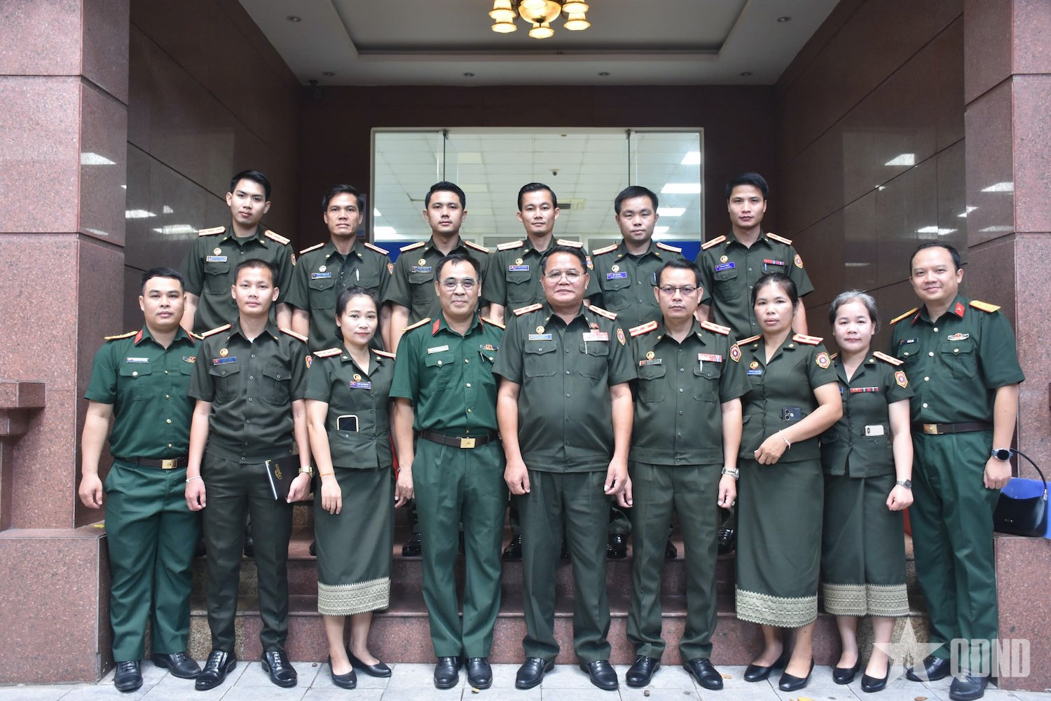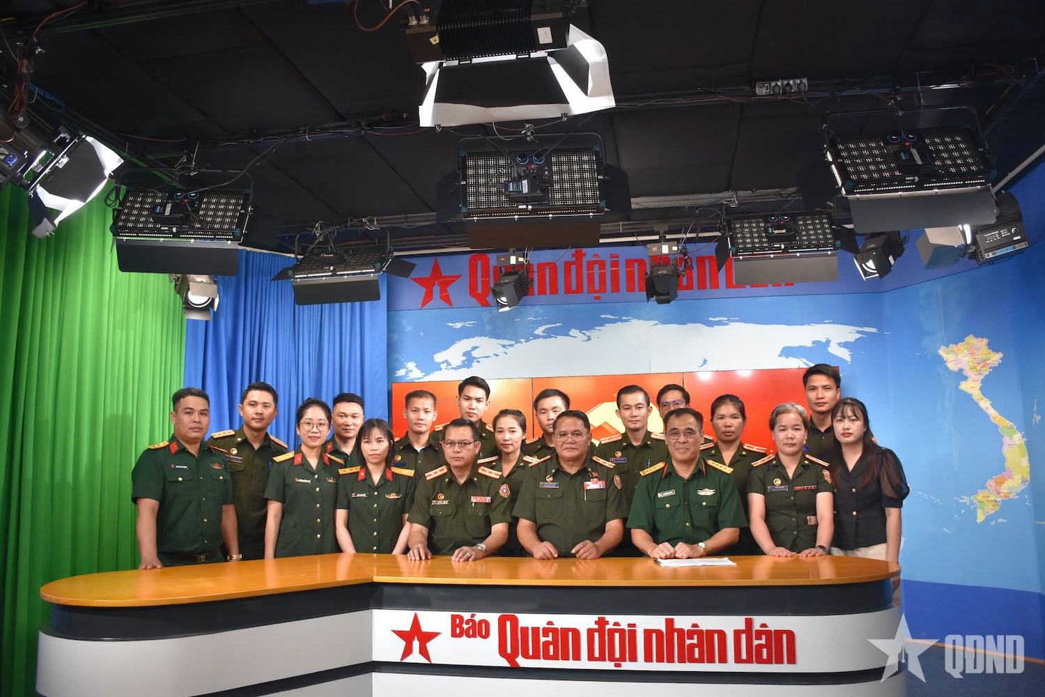 | Đoàn cán bộ Báo Quân đội nhân dân Lào cùng cán bộ, phóng viên Báo Quân đội nhân dân chụp ảnh chung. Ảnh: ĐẶNG CƯỜNG |