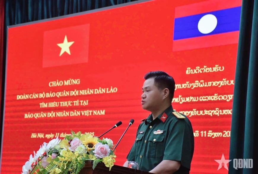 Thay mặt Đảng ủy, Ban biên tập và đội ngũ phóng viên, biên tập viên, nhân viên, chiến sĩ, người lao động Báo Quân đội nhân dân, Đại tá Nguyễn Hồng Hải, Phó tổng biên tập Báo Quân đội nhân dân bày tỏ vui mừng được đón đoàn; nhấn mạnh chuyến thăm, tìm hiểu thực tế lần này của đoàn cán bộ Báo Quân đội nhân dân Lào góp phần thắt chặt hơn nữa tình hữu nghị đặc biệt giữa hai nước Việt Nam - Lào. Đại tá Nguyễn Hồng Hải chúc đoàn đạt kết quả cao, thu được nhiều kiến thức, kinh nghiệm bổ ích, có nhiều ấn tượng, kỷ niệm đẹp trong thời gian tham gia tập huấn tại Việt Nam.