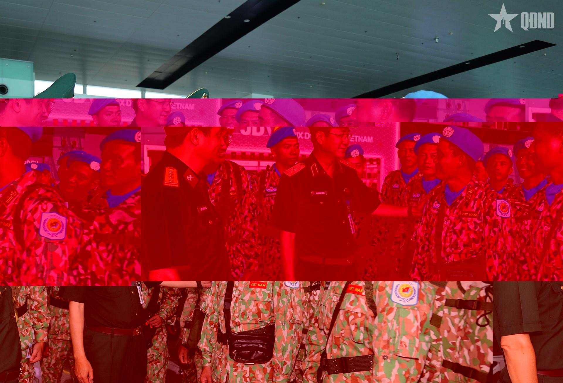 Thiếu tướng Phạm Mạnh Thắng, Cục trưởng Cục Gìn giữ hòa bình Việt Nam và đại diện một số cơ quan, đơn vị tiễn Đội Công binh số 4 tại Sân bay quốc tế Nội Bài.