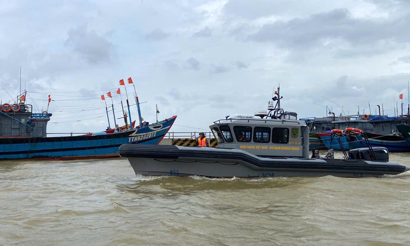 Ban Chỉ huy Bộ đội Biên phòng thành phố Huế triển khai thông báo, tuyên truyền cho các tàu, thuyền chủ động ứng phó với bão số 12. Ảnh: PCTT Huế