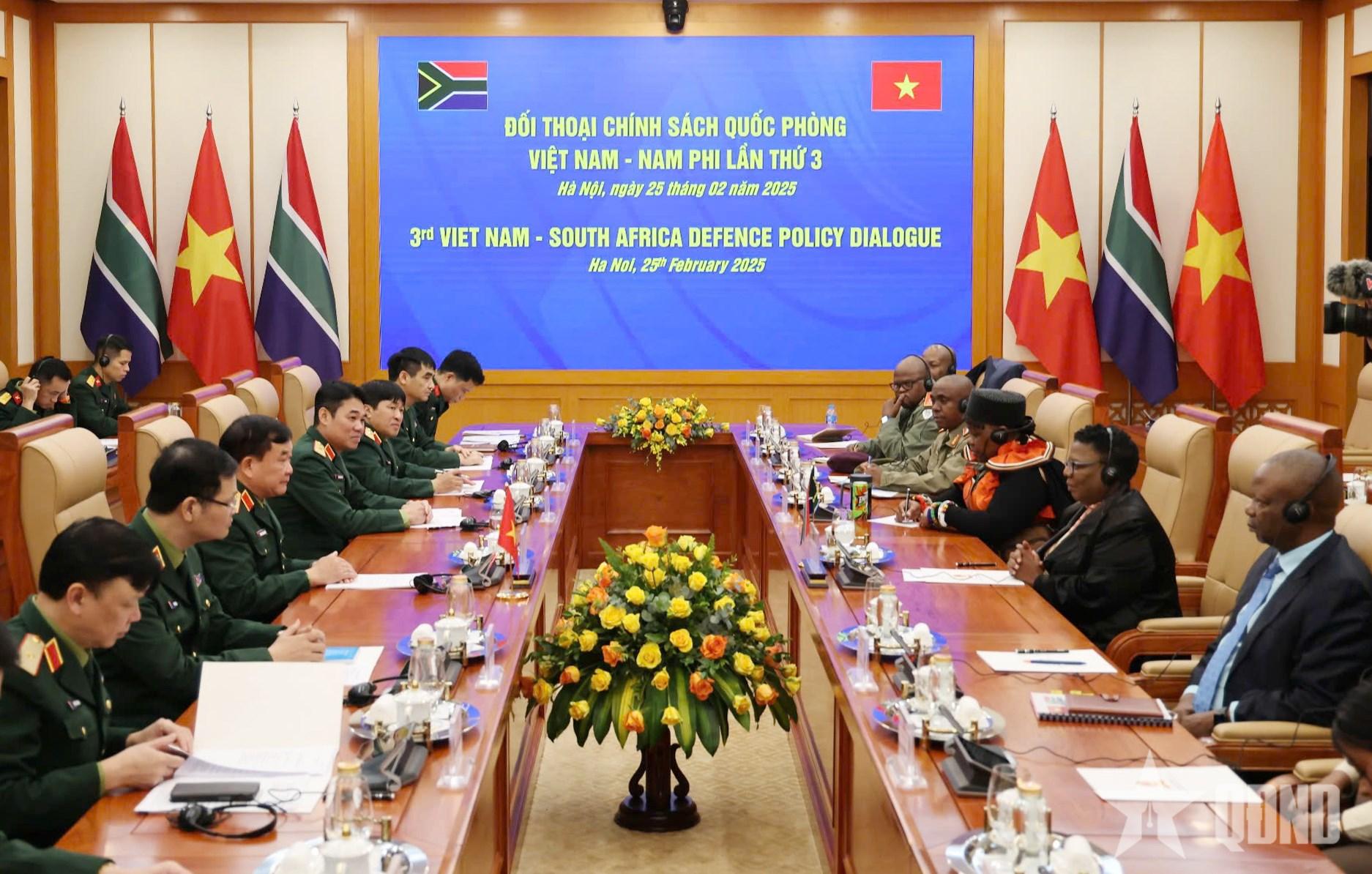 Sáng 25-2, tại Hà Nội, đã diễn ra Đối thoại chính sách quốc phòng Việt Nam - Nam Phi lần thứ ba, dưới sự đồng chủ trì của Thượng tướng Hoàng Xuân Chiến, Ủy viên Trung ương Đảng, Ủy viên Thường vụ Quân ủy Trung ương, Thứ trưởng Bộ Quốc phòng và bà Thobekile Gamede, Quyền Tổng thư ký Quốc phòng Nam Phi.