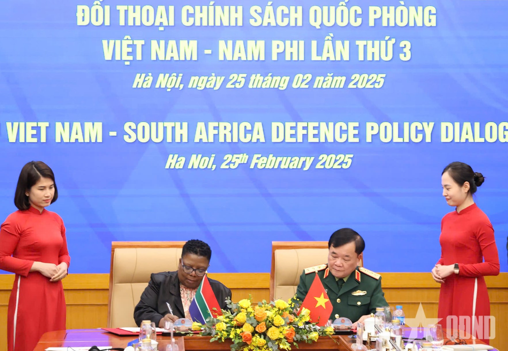 Kết thúc Đối thoại, Thượng tướng Hoàng Xuân Chiến và bà Thobekile Gamede đã ký Biên bản Đối thoại chính sách quốc phòng Việt Nam - Nam Phi lần thứ ba.