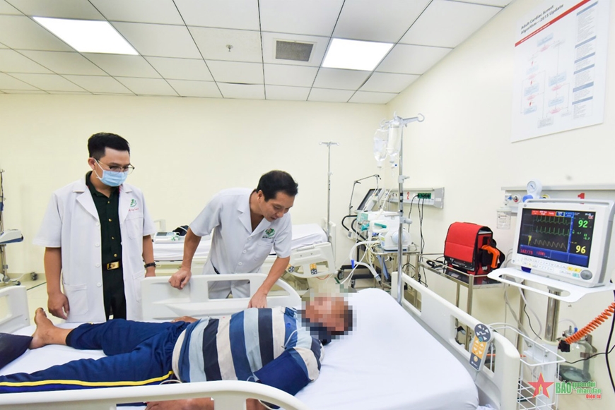 | Đại tá, Tiến sĩ, Thầy thuốc Ưu tú Trần Quốc Việt, Giám đốc Bệnh viện Quân y 175 trực tiếp thăm khám bệnh nhân. |