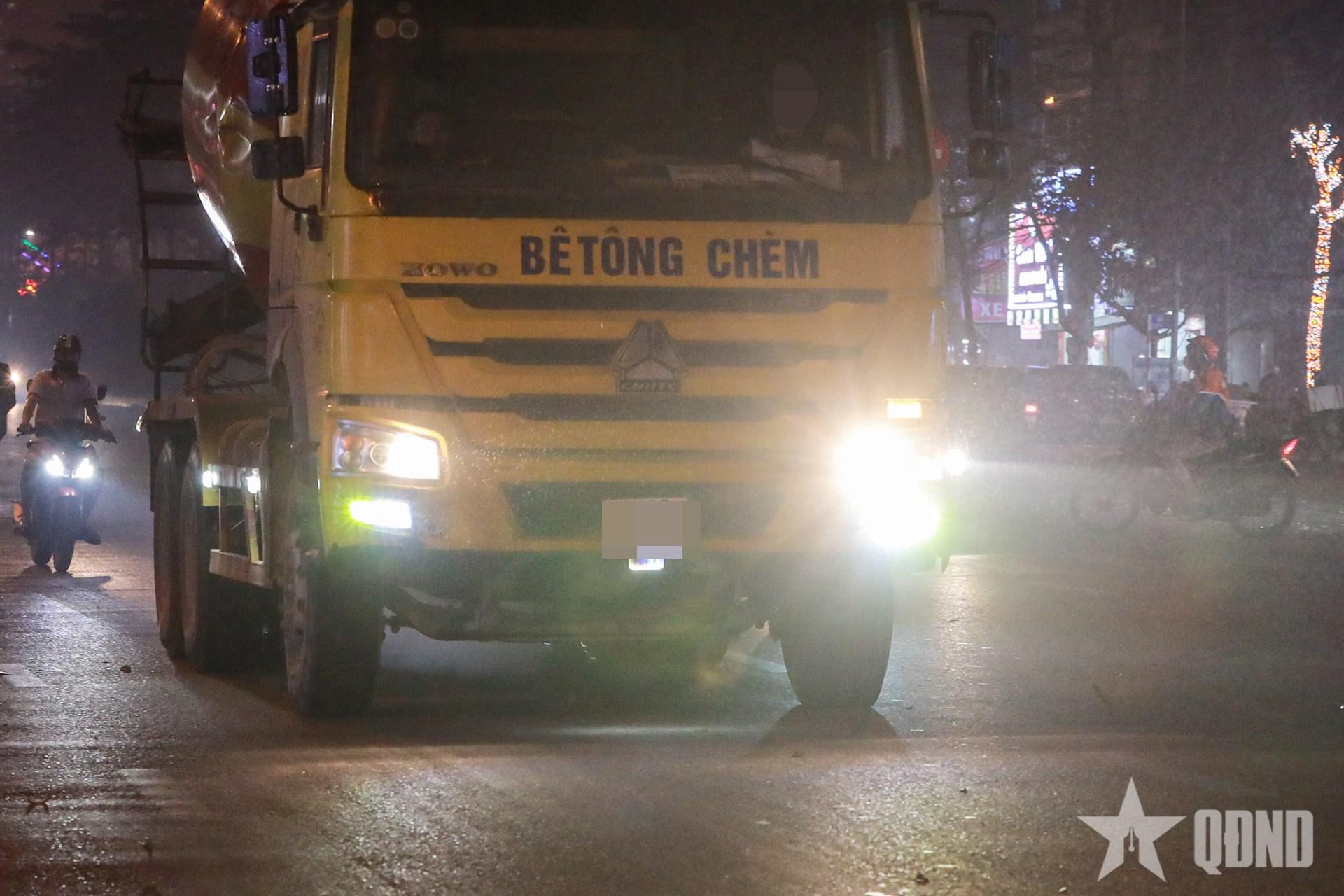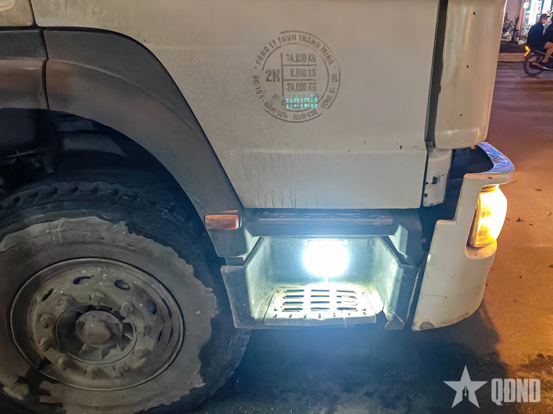 Không chỉ lắp đèn siêu sáng ở phía đầu xe, trường hợp của ô tô bồn chở bê tông còn lắp đèn rọi xung quanh phương tiện.