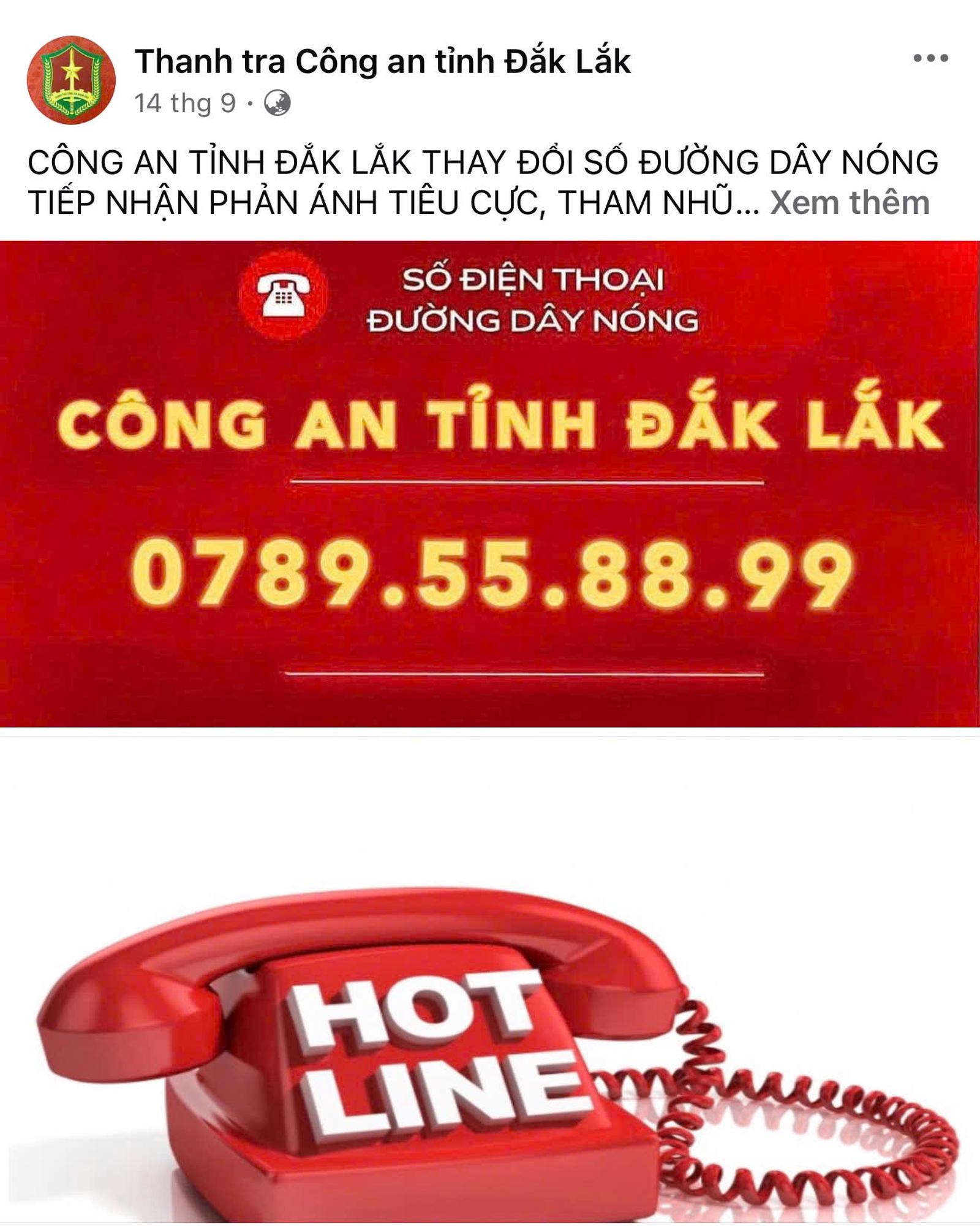 Nhằm phù hợp điều kiện thực tiễn sau khi sáp nhập địa giới hành chính và trước yêu cầu nâng cao chất lượng phục vụ của lực lượng Công an, Thanh tra Công an tỉnh Đắk Lắk đã tham mưu Giám đốc Công an tỉnh đổi số đường dây nóng tiếp nhận tố cáo tiêu cực của cán bộ, chiến sĩ sang số 0789.558899 để người dân dễ ghi nhớ và thuận tiện trong liên lạc.