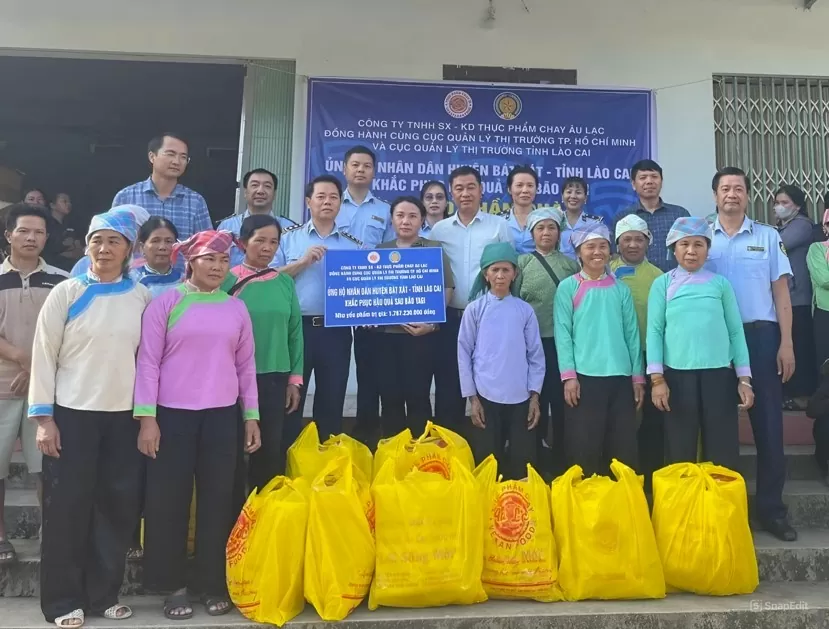 Thông tin từ Cục Quản lý thị trường tỉnh Lào Cai cho biết, đây là chương trình do Cục Quản lý thị trường tỉnh Lào Cai, Cục Quản lý thị trường Thành phố Hồ Chí Minh đồng hành cùng Công ty TNHH sản xuất kinh doanh thực phẩm chay Âu Lạc, Công ty Cổ phần Hóa Mỹ Phẩm Mỹ Hảo tổ chức thực hiện tiếp nối các hoạt động chung tay cùng nhân dân khắc phục hậu quả sau bão số 3 (Yagi).
