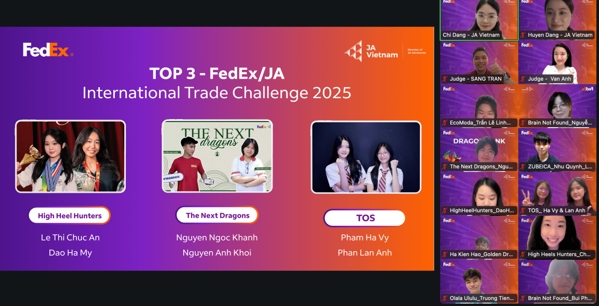 Cuộc thi Thử thách Thương mại Quốc tế FedEx/Junior Achievement (FedEx/JA ITC) năm 2025 do FedEx tổ chức quy tụ nhiều tài năng trẻ xuất sắc trên cả nước trình bày ý tưởng kinh doanh và chiến lược thương mại toàn cầu, đã chọn ra 6 học sinh thuộc 3 đội xuất sắc nhất.