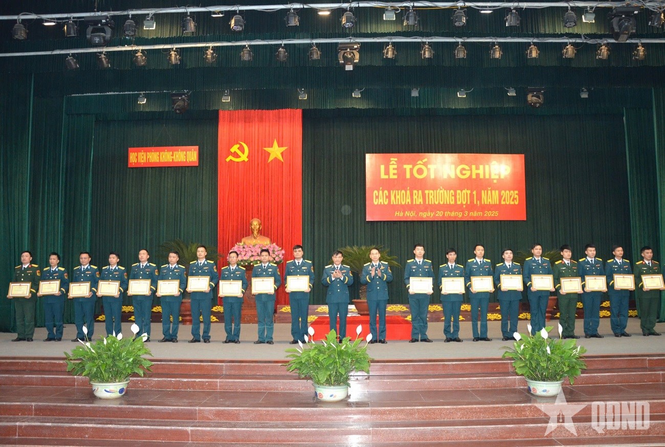 Đợt 1 năm 2025, học viên của Học viện PK-KQ tốt nghiệp ra trường thuộc các đối tượng: Đào tạo trình độ thạc sĩ nghệ thuật quân sự; đào tạo cán bộ trung, lữ đoàn trưởng phòng không, chuyên ngành Pháo Phòng không và Radar; đào tạo cán bộ trung, lữ đoàn trưởng Phòng không và Không quân, chuyên ngành Tên lửa và Không quân; đào tạo chuyển loại sĩ quan chính trị Phòng không, Không quân; đào tạo Kỹ sư hàng không, chuyên ngành Máy bay động cơ, chuyên ngành Vô tuyến điện tử, chuyên ngành Thiết bị hàng không, chuyên ngành Vũ khí hàng không.