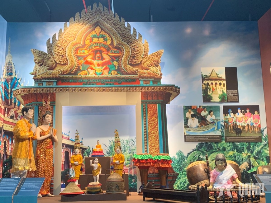 Hình ảnh ngôi chùa của người Khmer với mái cong vút, những bức tượng Phật với các tư thế khác nhau phản ánh đời sống tín ngưỡng phong phú của cộng đồng người dân tộc Khmer. Bên cạnh đó là hình ảnh lễ cưới truyền thống với cô dâu, chú rể trong trang phục rực rỡ, thể hiện nét đẹp văn hóa gia đình và cộng đồng.