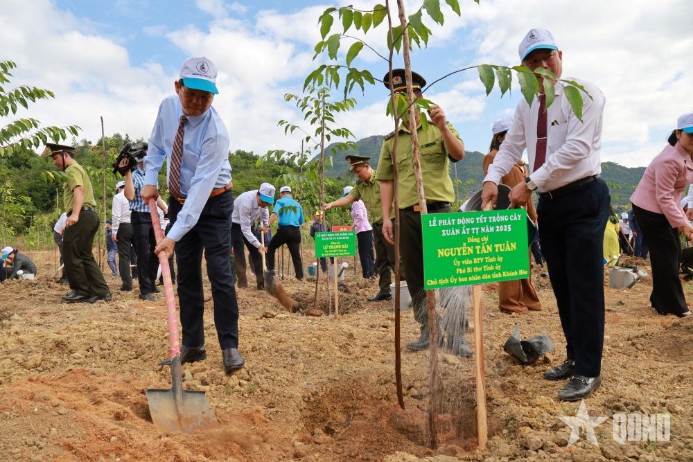 Ngay sau lễ phát động, các đại biểu đã tham gia trồng cây tại khu vực hồ chứa nước Đắc Lộc (thôn Đắc Lộc 1, xã Vĩnh Phương, TP Nha Trang).