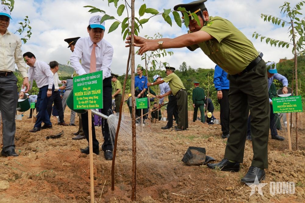 | Bộ CHQS tỉnh Khánh Hòa tham gia trồng cây. |