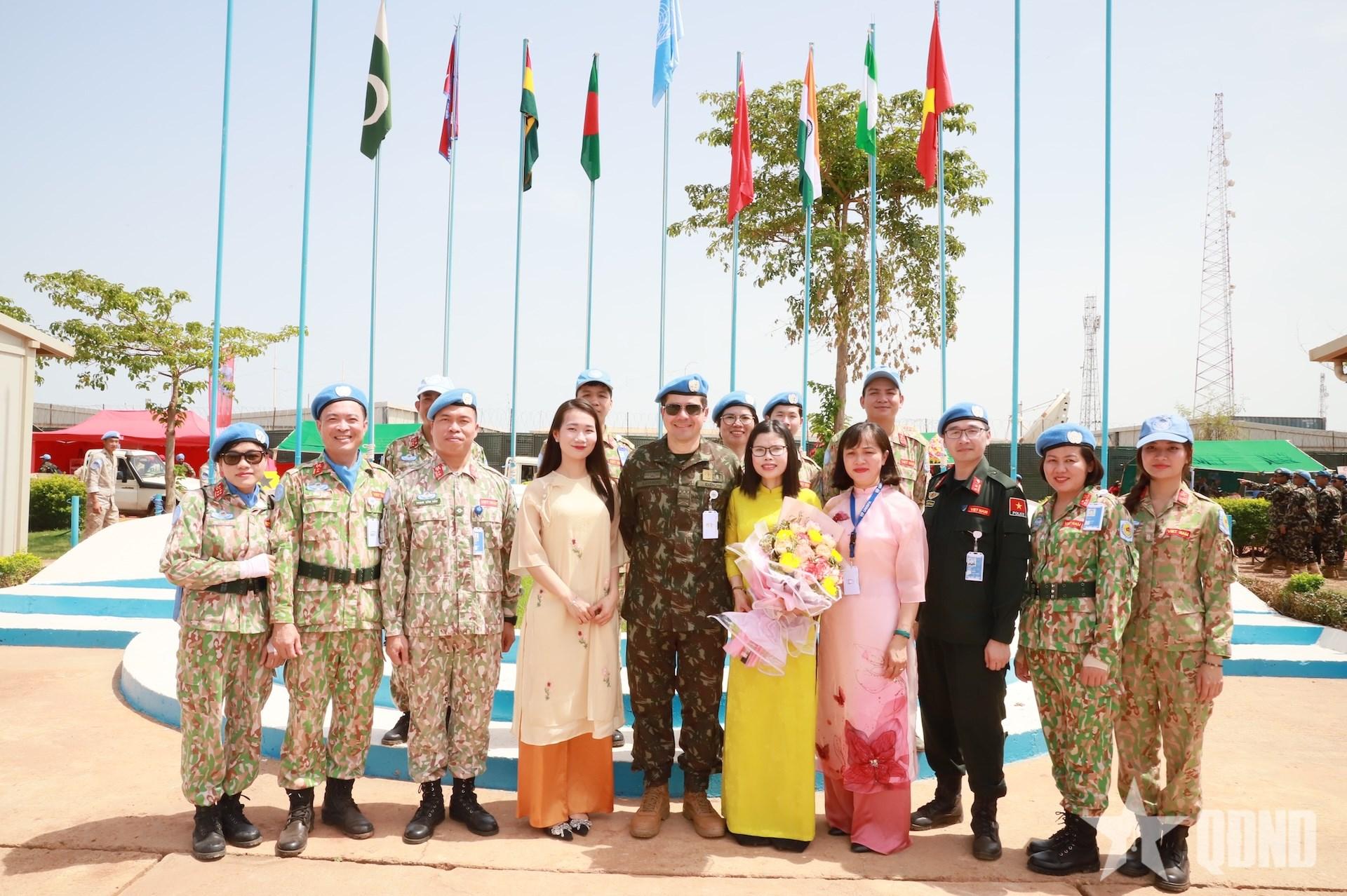 | Chỉ huy Phái bộ UNISFA chụp ảnh lưu niệm với chỉ huy và thành viên lực lượng các nước. |